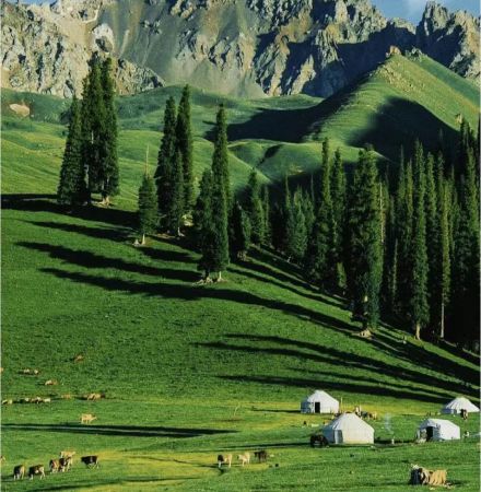 新疆,早晚溫差較大,達(dá)到10至15度左右,另外有些情況,如天池過夜、遊南山牧場、登一號(hào)冰川、遊喀納斯